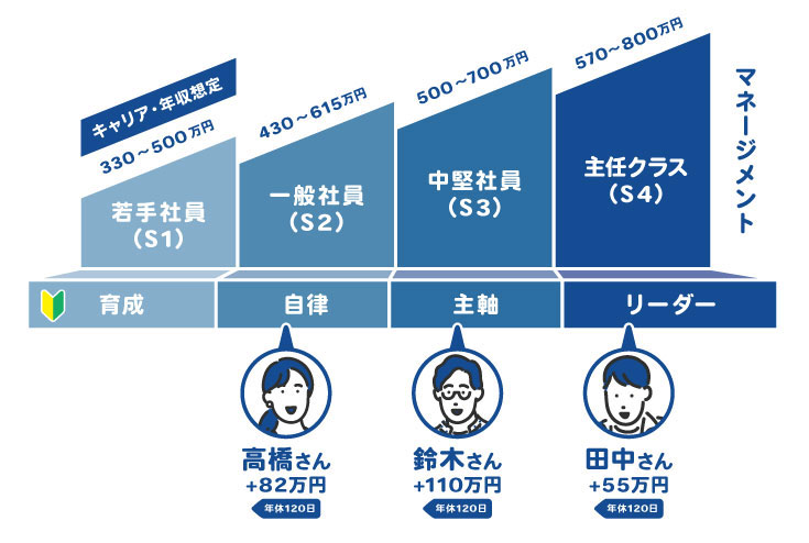 想定 転職翌年より年収570万円(諸手当含む)年間休日120日